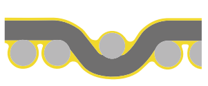 傳統造紙成型網(wǎng)輥側的PA和PET布置: 新型Villforth VEXTREME?纖維造紙成型網(wǎng):